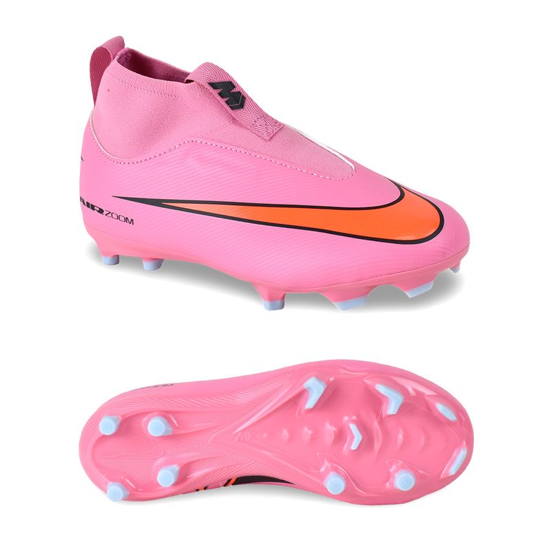 Equipados con una unidad Air Zoom mejorada, estos botines proporcionan una sensación elástica y reactiva que impulsa cada paso, facilitando desmarques rápidos y sprints determinantes. El icónico cuello elástico envuelve el tobillo para una sensación de seguridad y estabilidad, permitiendo movimientos naturales y un ajuste tipo media que mejora la confianza en cada giro. La parte superior cuenta con tecnología NikeSkin y patrones de chevrón integrados. Esto no solo mejora el agarre con la pelota en condiciones de alta velocidad, sino que brinda una sensación de contacto casi natural. La parte superior cuenta con tecnología NikeSkin y patrones de chevrón integrados. Esto no solo mejora el agarre con la pelota en condiciones de alta velocidad, sino que brinda una sensación de contacto casi natural. La suela híbrida de última generación está diseñada para brillar tanto en pasto natural (FG) como en césped artificial (AG). Su patrón de tracción en forma de onda asegura un agarre firme y cambios de dirección precisos.