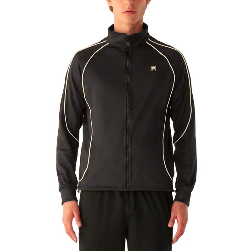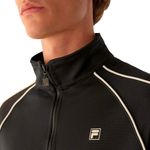 Domina la cancha y la ciudad con un diseño clásico que no sacrifica la comodidad. Esta prenda de la línea de tenis de Fila combina una estética retro con materiales modernos, ideal tanto para tus entrenamientos de alta intensidad como para un look urbano sofisticado.La campera masculina Fila Comfort Tennis Match está confeccionada en un punto de poliéster y elastano, ofreciendo una elasticidad que acompaña todos tus movimientos. Su corte holgado garantiza un confort extremo, mientras que las mangas raglán permiten una movilidad total en los brazos, factor clave para el desempeño deportivo.El diseño destaca por sus ribetes en contraste de color blanco que recorren las mangas y el frente, aportando una estructura visual elegante sobre el fondo negro. Cuenta con un cuello alto protector y una apertura frontal completa con cremallera, equipada con un tirador F-Box personalizado.Mezcla de poliéster y elastano para mayor flexibilidad.Comfort fit (holgado) para máxima libertad de movimiento.