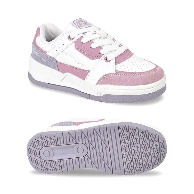 Diseñadas pensando en la energía y el dinamismo de los niños, las Zapatillas Atomik Life Jr ofrecen una combinación de estilo y durabilidad. La capellada de ecocuero de alta calidad garantiza una resistencia superior al uso diario, mientras que los detalles en gamuza sintética y los perforados estratégicamente ubicados no solo añaden un toque de sofisticación, sino que también aseguran una transpirabilidad óptima. La paleta de colores, que incluye tonos blancos, lilas y rosas, otorga a estas zapatillas un aspecto fresco y juvenil. La suela de goma, robusta y flexible, proporciona una tracción excelente y una pisada segura en diversas superficies, ideal para el juego y la actividad física. El sistema de ajuste con cordones permite un calce personalizado y seguro, adaptándose a la forma del pie para un confort inigualable. El logo de la marca sutilmente integrado en los laterales y la lengüeta refuerza su autenticidad. Perfectas para la escuela, el parque o cualquier salida casual, las Zapatillas Atomik Life Jr son la elección predilecta para quienes buscan un calzado que combine estilo, comodidad y resistencia en un solo diseño.