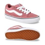Redefiní tu look urbano con las Vans Caldrone, un calzado que captura la esencia rebelde de la cultura skate de los noventa y la adapta a la moda actual. Con su cautivador tono rosa y una silueta robusta de caña baja, estas Zapatilla son la opción ideal para quienes buscan destacar con autenticidad sin renunciar a la comodidad.Las Vans Caldrone están fabricadas con una combinación premium de gamuza (suede) y lona, lo que garantiza una estructura resistente al desgaste y una excelente transpirabilidad. Su diseño de paneles múltiples se ve resaltado por una versión sobredimensionada de la icónica Sidestripe™ blanca, aportando un toque audaz que moderniza el perfil clásico de la marca.Pensadas para un uso intensivo, este modelo incorpora un acolchado extra tanto en la lengüeta como en el cuello, brindando un soporte envolvente y una sensación de suavidad constante. La unidad inferior vulcanizada de última generación, junto con la legendaria suela waffle de goma, ofrece la tracción y flexibilidad necesarias para moverte con seguridad por la ciudad.